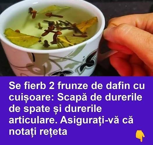 Infuzia preparată din două frunze de dafin și cuișoare, prin fierbere, este recomandată pentru proprietățile sale antiinflamatoare, analgezice și antiseptice, care contribuie la reducerea durerilor și relaxarea mușchilor tensionați.