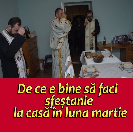Conform credintei populare, luna martie este considerata periculoasa, deoarece este momentul in care farmecele si magia isi manifesta cea mai puternica influenta. Pentru protectia casei si a familiei, preotii recomanda efectuarea sfesteniei.