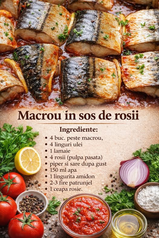 Pentru astazi v-am pregatit o reteta delicioasa cu macrou in sos de rosii. Iata lista cu ingredientele si modul de preparare.