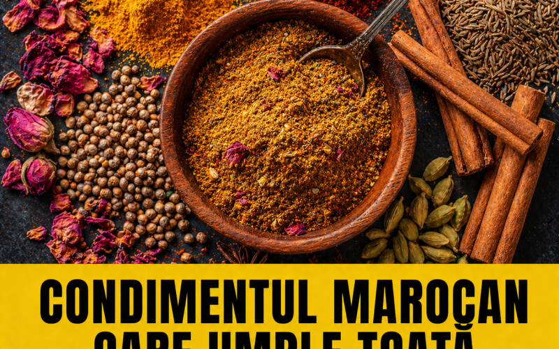 Dacă ai intrat vreodată într-o casă marocană în timp ce se gătea, nu ai uitat mirosul. Este un parfum complex, cald, ușor dulce, cu note de scorțișoară, de piper, de trandafir uscat și de ceva indefinibil care îți face stomacul să se întoarcă spre bucătărie. Este mirosul amestecului de condimente pe care femeile din Maroc îl pun în aproape orice tocăniță, orice stew, orice mâncare cu legume sau carne.